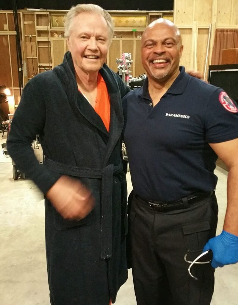 Showtime 00:33 Actor Jon Voight going into cardiac arrest and being worked on by Paramedic 1 (Guy A Fortt).